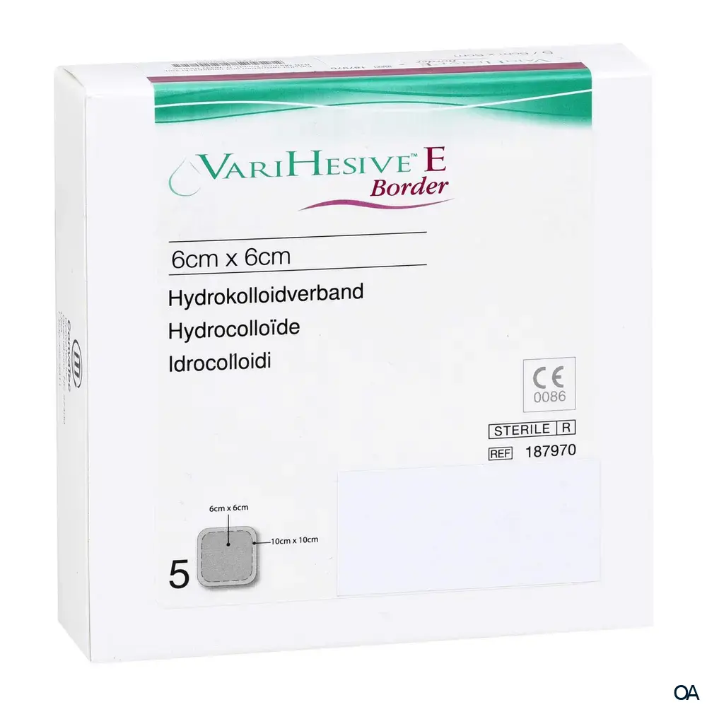 VARIHESIVE® E Border enthält die einzigartige ConvaTec Hydrokolloid-Rezeptur, die den Verband von anderen Hydrokolloidverbänden unterscheidet. Der Verband eignet sich durch den zusätzlichen Fixierrand zur Versorgung von problematischen Körperstellen.