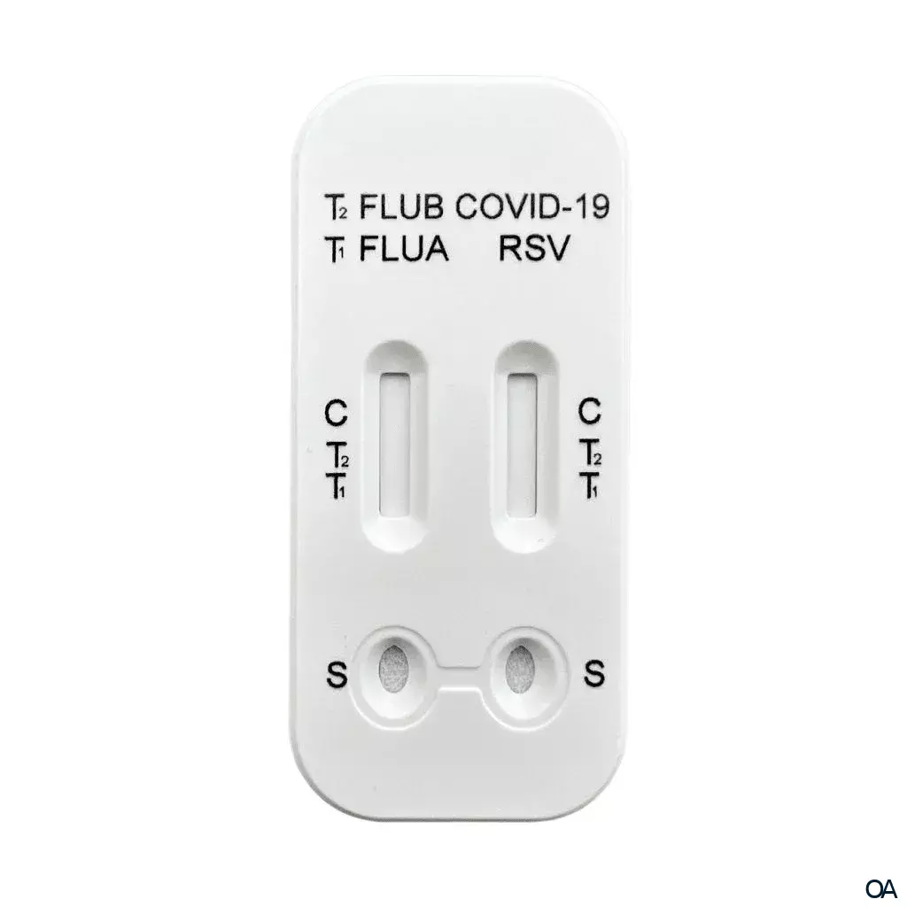 Bei dem Kombitest Influenza A, Influenza B, COVID-19 und RSV (Respiratory Syncytial Virus) handelt es sich um ein immunchromatographisches In-vitro-Assay für den qualitativen und differenzierten Nachweis von Nukleokapsidprotein-Antigenen von Influenza A (einschließlich des Subtyps H1N1), Influenza B, dem Respiratorischen Synzytial-Virus und/oder SARS-CoV-2 in Nasenabstrichproben von Personen mit oder ohne Symptomen oder anderen epidemiologischen Gründen für den Verdacht auf das Vorliegen von Influenza A, Influenza B, RSV und/oder COVID-19 Infektionen. Dieser Kombitest Covid Influenza RSV ist für die In-vitro-Diagnostik und Selbsttests.