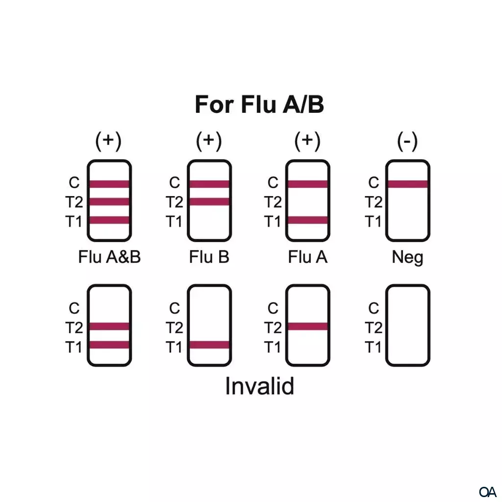 - Influenza A: Beim Influenza A-Antigen-Nachweis beträgt die positive Koinzidenzrate 100,00 %, die negative Koinzidenzrate 99,34 % und die Gesamtkoinzidenzrate 99,43 %.