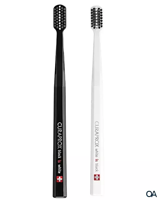 Curaprox Zahnbürste Black is White Duo Black/White sorgen für ein ganz neues Putzerlebnis: Sanft zu Zähnen und Zahnfleisch – dank 8760 Curen®-Filamenten – sind diese Zahnbürsten gnadenlos hart zu Plaque.