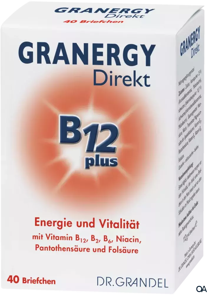 - Vitamin B12 ist für die Leistungsfähigkeit und Vitalität unentbehrlich. Es ist am Energiestoffwechsel beteiligt und sorgt unter anderem dafür, dass die Energie aus der Nahrung in körpereigene Energie umgewandelt werden kann. In Granergy Direkt ist Vitamin B12 mit weiteren ausgewählten Vitaminen kombiniert.