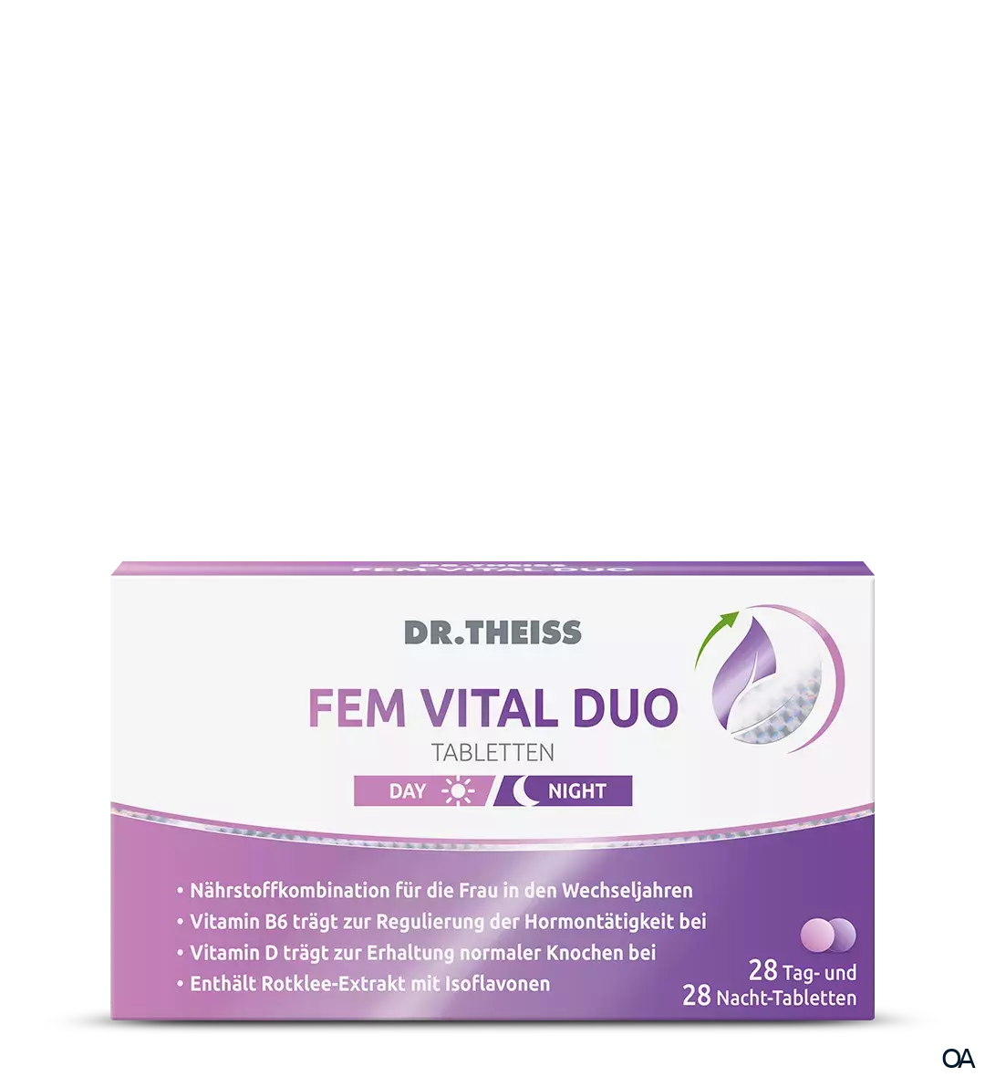 Dr. Theiss FEM VITAL DUO Tag- & Nacht-Tabletten kombinieren verschiedene Vitamine und Mineralstoffe, die den Körper unterstützen: