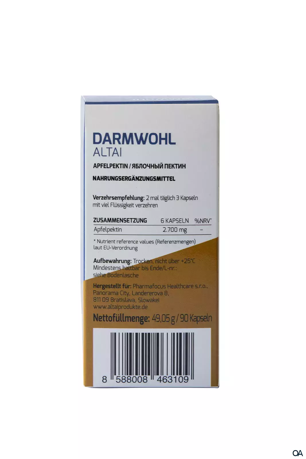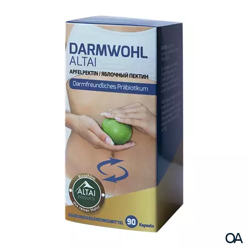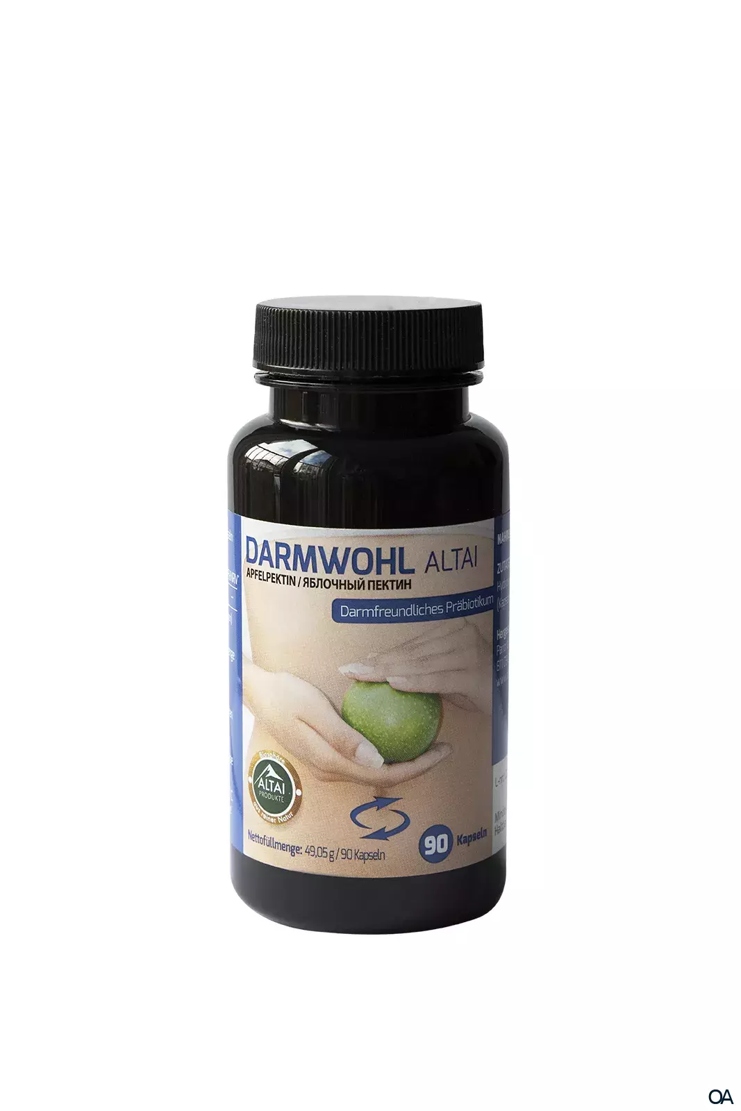 Darmwohl Kapseln Altai ist ein Nahrungsergänzungsmittel mit dem Ballaststoff Pektin. Dieses bindet Wasser und ist daher bei Durchfall geeignet. Außerdem tragen Pektine zur Aufrechterhaltung eines normalen Cholesterinspiegels im Blut bei.