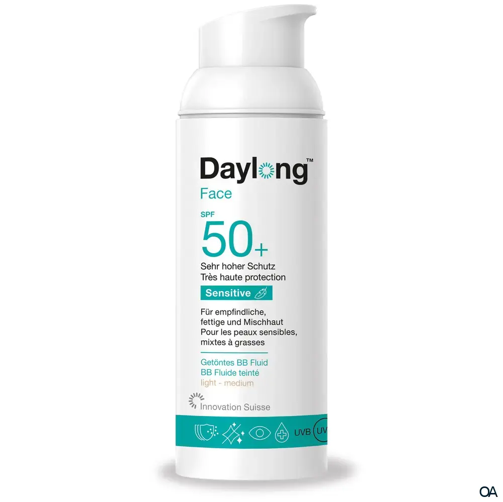 Daylong™ Sensitive Face getöntes BB Fluid SPF 50+ vereint natürliche Deckkraft mit hohem Sonnenschutz gegen UVA- und UVB Strahlung. Für einen ebenmäßigen, langanhaltenden, matten Teint und geschützte Haut.
