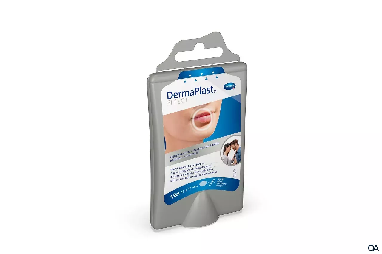 DermaPlast® Fieberblasenpflaster 12 x 17mm - Hydrokolloid-Pflaster, das sich durch seine ergonomische Form den Lippen anpasst und die Bläschen nahezu unsichtbar abdeckt; lindert Juckreiz und Spannungsschmerz, beugt Verkrustungen vor und reduziert die Ansteckungsgefahr; in praktischer, handlicher Plastikbox incl. Spiegel und Pinzette.
