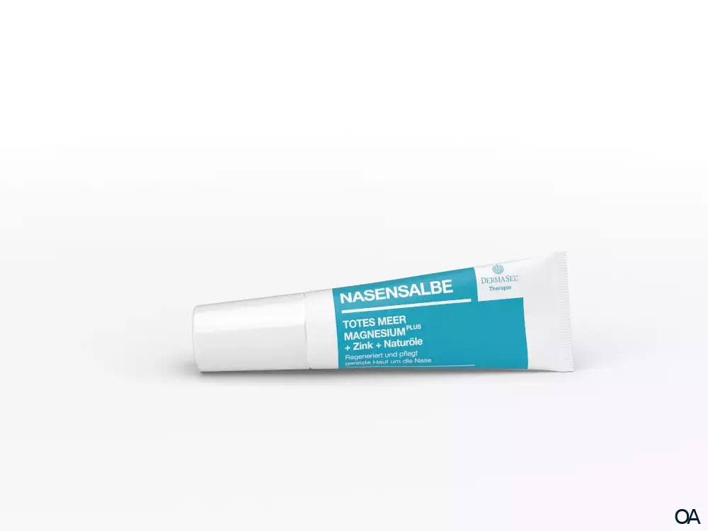 Bei erhöhter Beanspruchung in der Allergie- oder Erkältungszeit wird die empfindliche Haut um die Nase oft trocken und gereizt. Die innovative Rezeptur der DermaSel® Therapie Nasensalbe mit TOTES MEER SALZ MAGNESIUMPLUS, Zink, Hyaluron, Panthenol und Avocado- und Sheanuss-Ölen wirkt hautdurchfeuchtend, intensiv pflegend und wundheilend. Sie bietet die perfekte Extraportion Pflege nach der Nasenspülung und zur Regeneration der Haut. Die Salbe bildet einen leicht schützenden Film um die Nase, ohne dabei zu fetten, und kann bei regelmäßiger Anwendung Hauttrockenheit und Reizungen entgegenwirken.