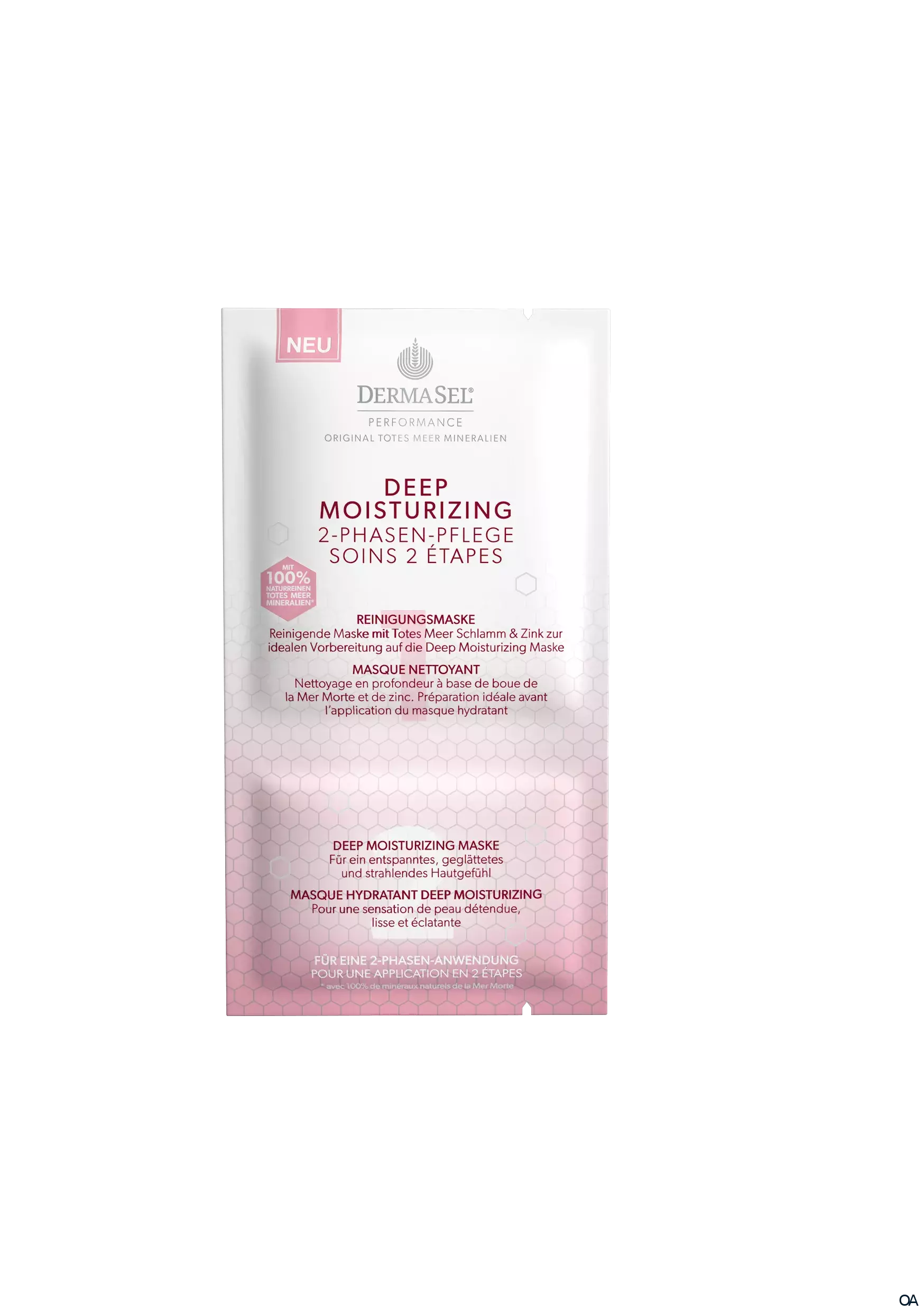 Die DermaSel® Deep Moisturizing 2-Phasen-Pflege enthält eine Reinigungsphase und ein Pflegekonzentrat im perfekt portionierten Doppelkammersachet. Die erste Phase mit Totes Meer Schlamm und Zink reinigt die Haut tiefenwirksam. Die feuchtigkeitsspendende Zusammensetzung in Phase 2 verhilft der Haut, sich von innen heraus zu stabilisieren und diese wieder zum Strahlen zu bringen. Hauttrockenheit und Spannungsgefühl werden reduziert, so dass die Haut wunderbar gepflegt, erholt und geglättet wirkt.