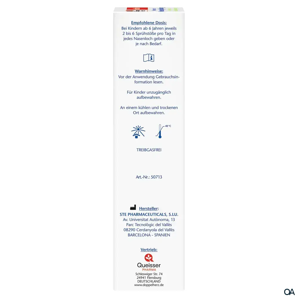 - Für Erwachsene und Kinder ab 6 Jahren: 2 bis 6 Sprühstöße pro Tag in jedes Nasenloch geben oder je nach Bedarf.