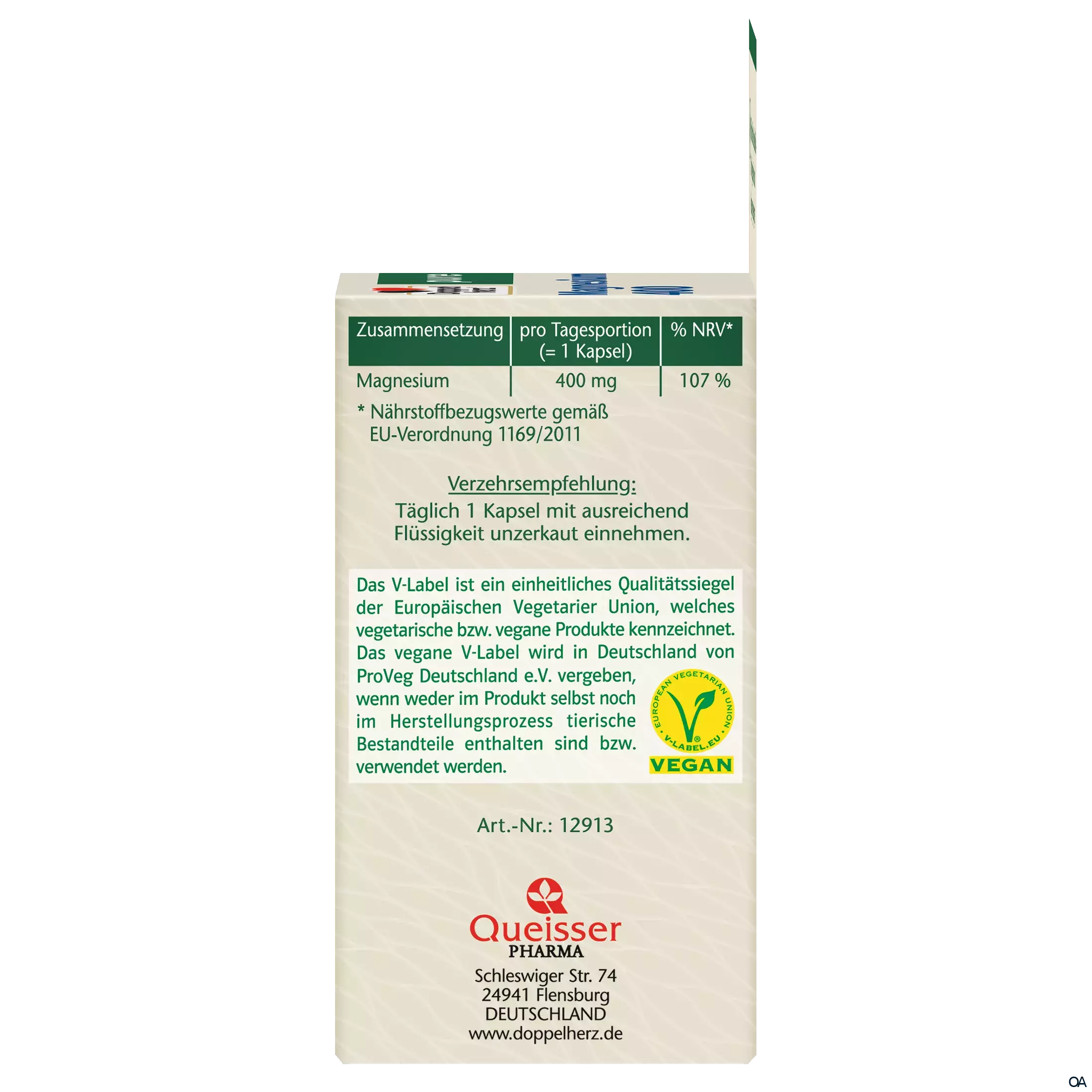 - Zusammensetzung pro Kapsel % NRV*: Magnesium 400 mg 107 %. * Nährstoffbezugswerte gemäß EU-Verordnung 1169/2011.