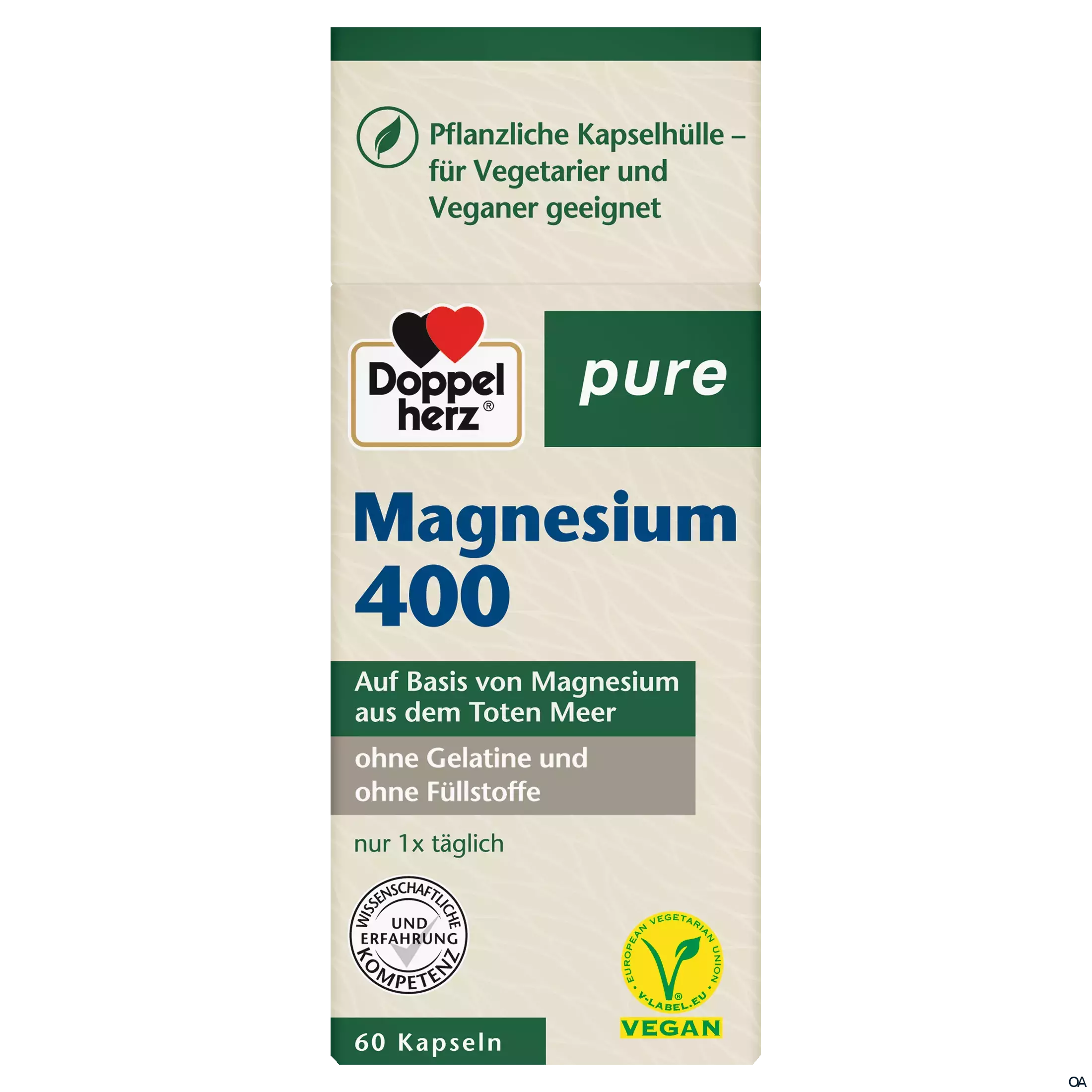 Doppelherz pure Magnesium 400 Kapseln sind ein Nahrungsergänzungsmittel auf Basis von Magnesium aus dem Toten Meer. Magnesium leistet einen Beitrag zum normalen Energiestoffwechsel und zur normalen Funktion von Muskeln und Nervensystem.
