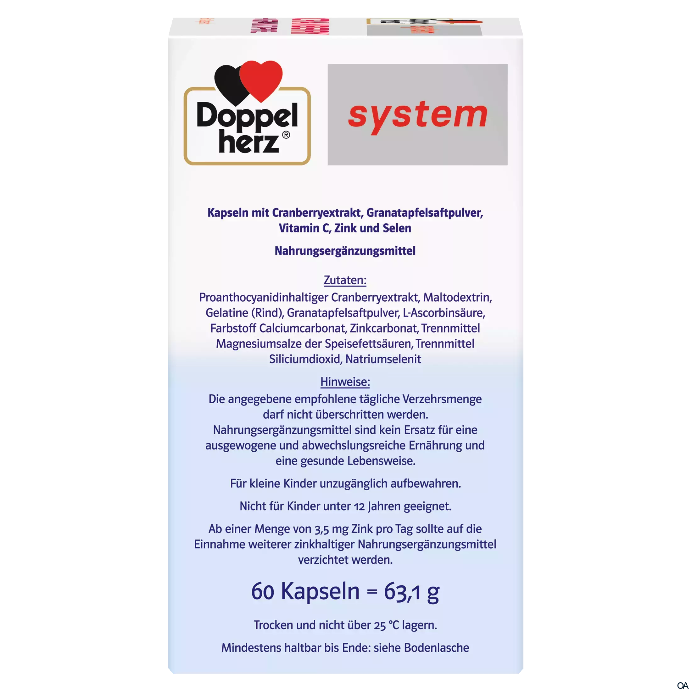 Die Kombination aus hochwertigem Cranberryextrakt mit Granatapfelsaftpulver bildet die pflanzliche Basis der Kapseln von Doppelherz system.