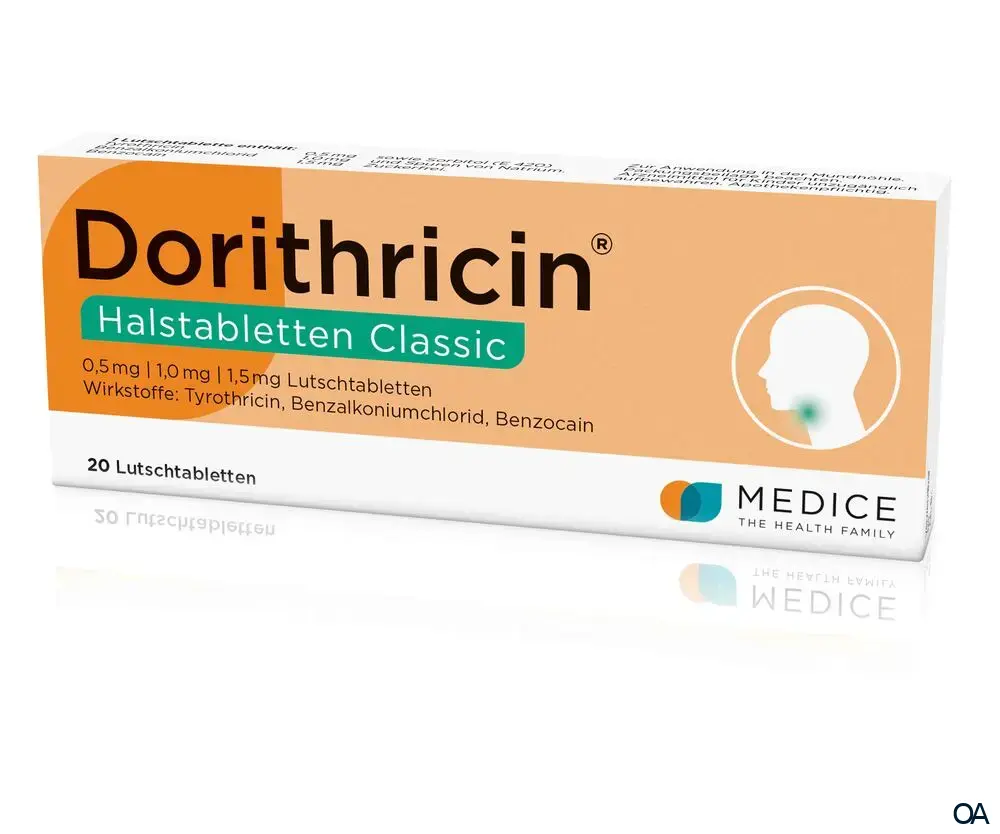 Dorithricin® Halstabletten Classic enthalten als Mittel zur oberflächlichen Betäubung Benzocain sowie die keimhemmenden und keimtötenden Substanzen Tyrothricin und Benzalkoniumchlorid. Aufgrund dieser Wirkstoffkombination wird dieses Arzneimittel als Mund- und Rachentherapeutikum eingesetzt.