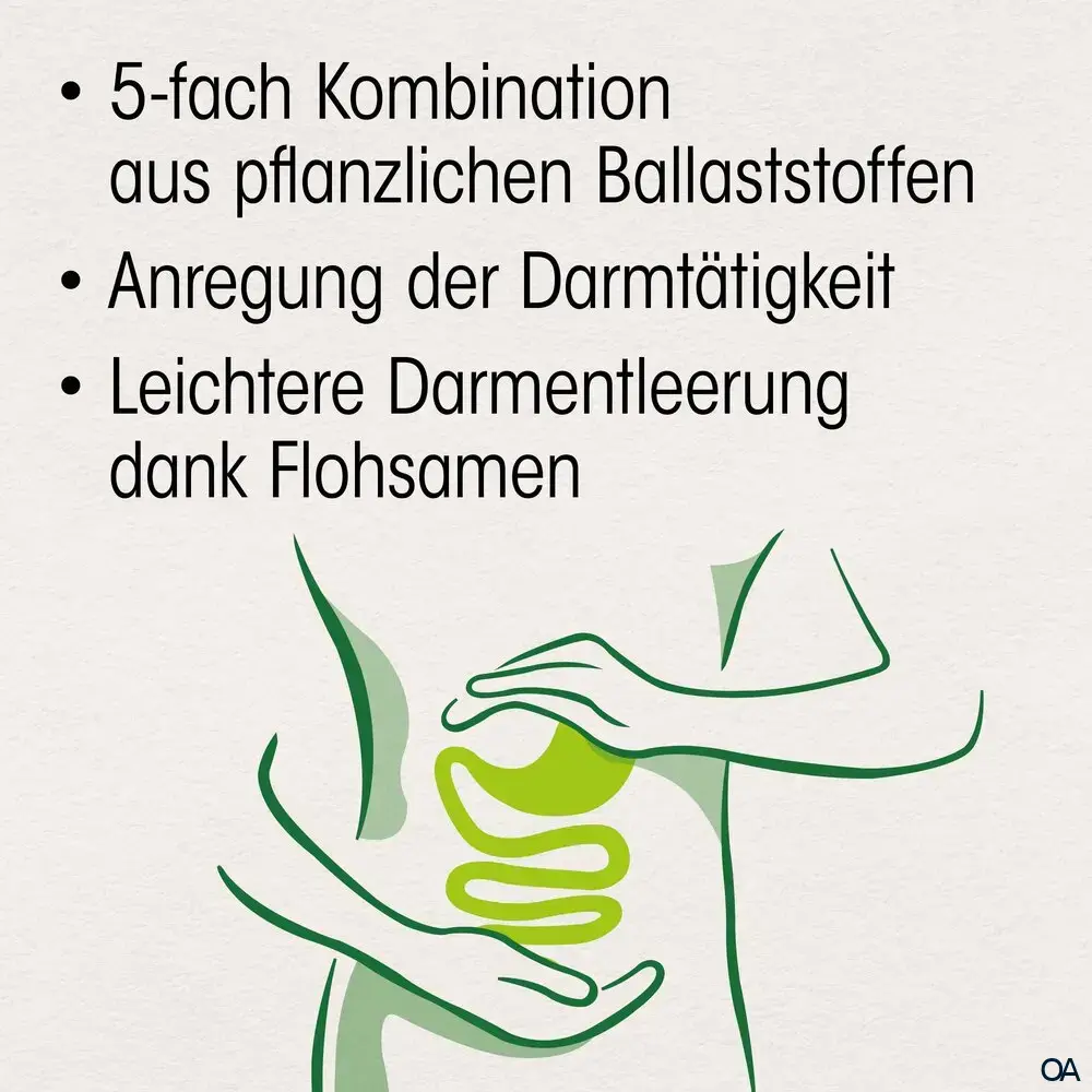 - Verbesserung der Stuhlkonsistenz und leichtere Darmentleerung (Flohsamenschalen)