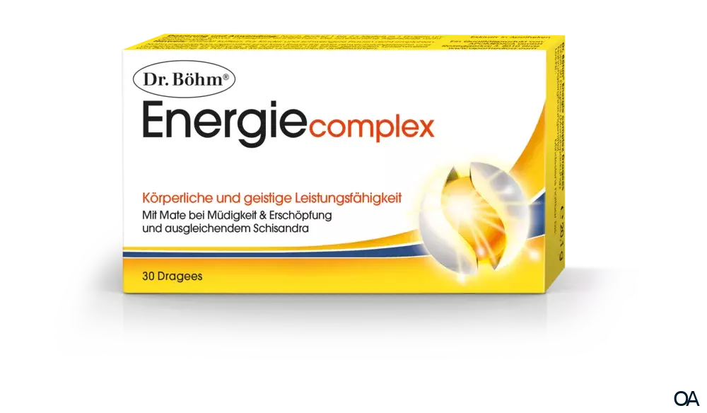 Dr. Böhm® Energie complex Dragees sind ein Nahrungsergänzungsmittel zur Unterstützung der körperlichen und geistigen Leistungsfähigkeit*! Mit Mate bei Müdigkeit und Erschöpfung und ausgleichendem Schisandra.