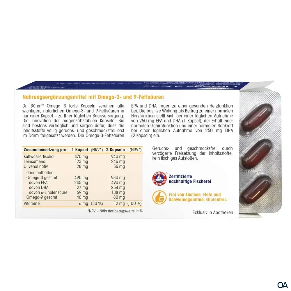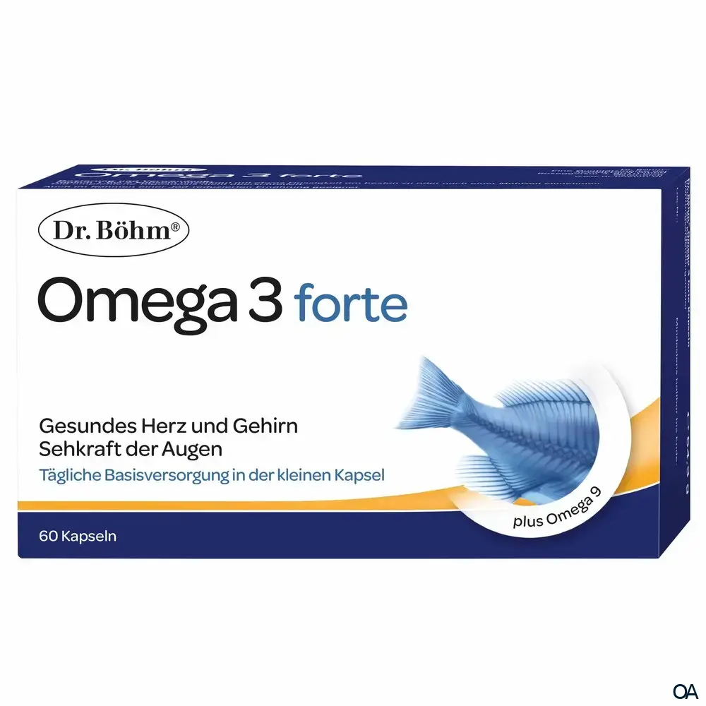 Die Dr. Böhm® Omega 3 forte Kapseln sind ein Nahrungsergänzungsmittel zur Unterstützung für ein gesundes Herz und Gehirn! Deckt den täglichen Bedarf an den essentiellen Omega 3 Fettsäuren mit nur einer Kapsel ab.