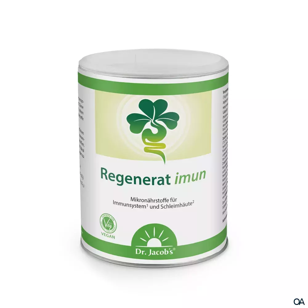 Dr. Jacob‘s Regenerat imun Pulver ist ein Nahrungsergänzungsmittel mit Mikronährstoffen zur Unterstützung des Immunsystems und der Schleimhäute.