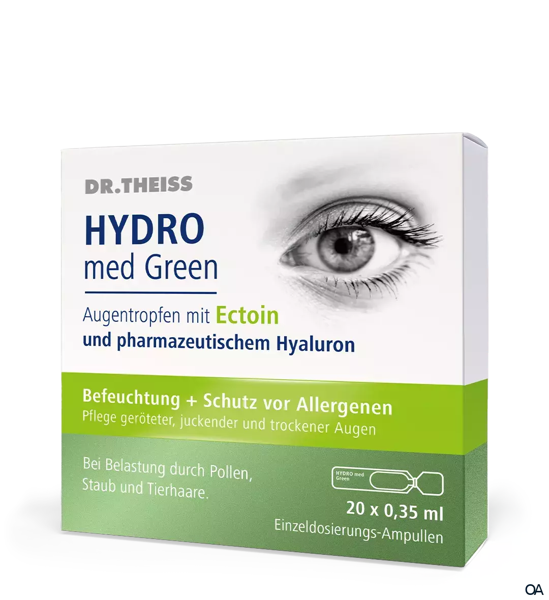 - Hinweise: Aufgrund ihrer Konservierungsmittelfreiheit sind Dr. Theiss HYDRO med Green Augentropfen mit Ectoin und pharmazeutischem Hyaluron auch bei längerfristiger Anwendung besonders gut verträglich.