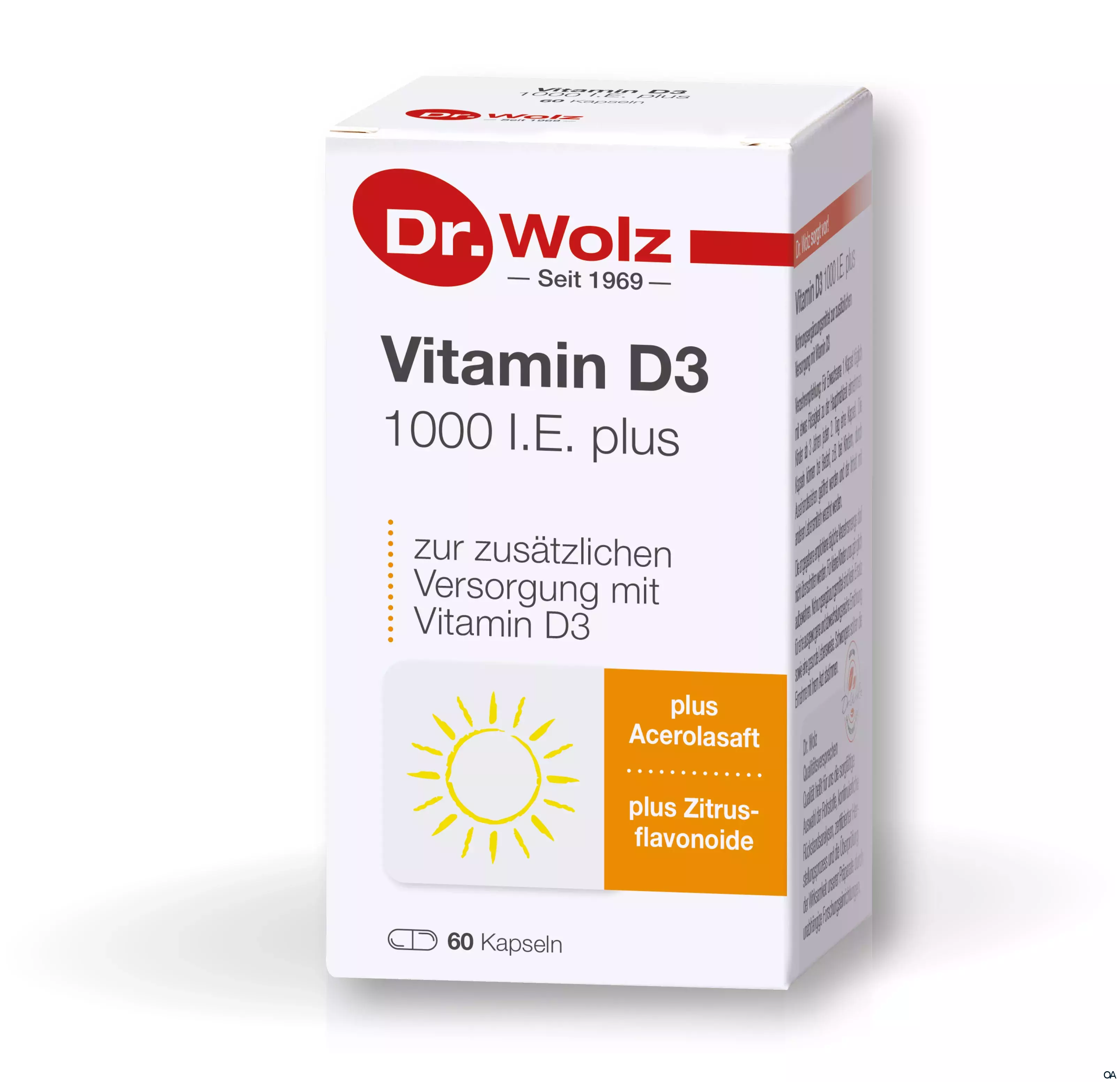 Aktive Inhaltsstoffe: Eine Kapsel enthält Vitamin D3 (1000 I.E.) 25 µg, Zitrusbioflavonoide 36 mg, Vitamin C aus Acerolasaftpulver 40 mg. Kapselhülle: Cellulose.