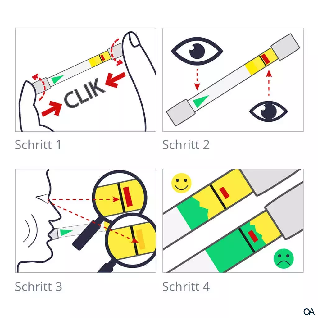 - Suchen Sie das grüne Dreieck. Blasen Sie in die vorgegebene Richtung in das Röhrchen.