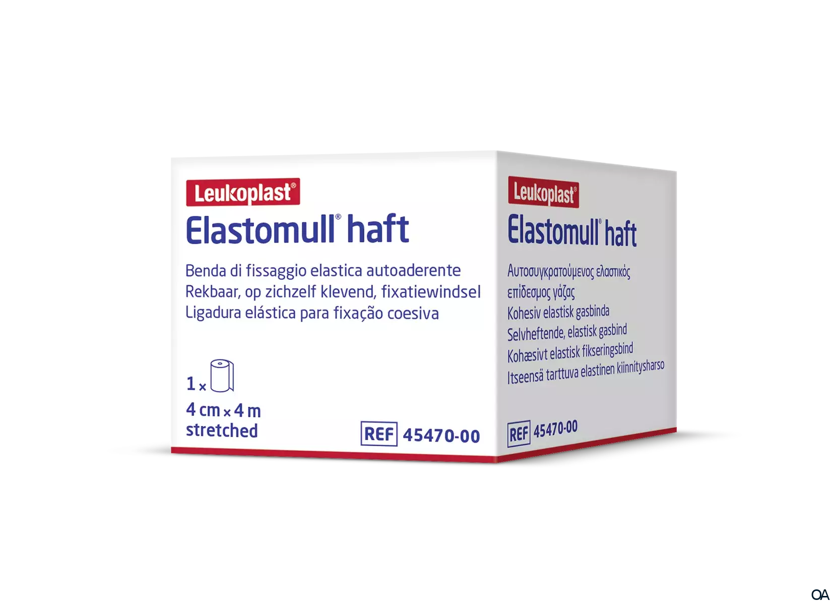 Elastomull® haft ist eine kohäsive elastische und selbst haftende latexfreie Fixierbinde zum Fixieren von Castschienen und Verbänden an Gelenken und vielbewegten Körperteilen.