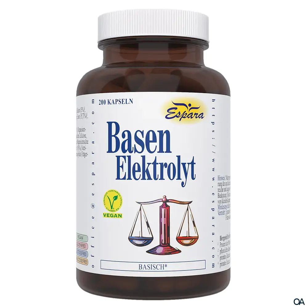 Die Espara Basen-Elektrolyt Kapseln sind ein Nahrungsergänzungsmittel mit basenbildenden Mineralstoffen. Magnesium trägt zum Elektrolythaushalt und Zink zum normalen Säure-Basen-Haushalt bei.