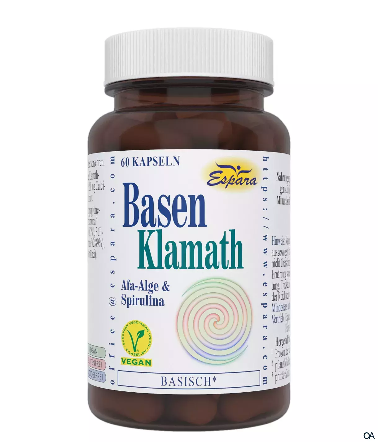 Espara Basen-Klamath Kapseln sind ein Nahrungsergänzungsmittel Nahrungsergänzungsmittel mit basenbildenden Mineralstoffen und basischen Algen. Magnesium trägt zum Elektrolythaushalt bei.