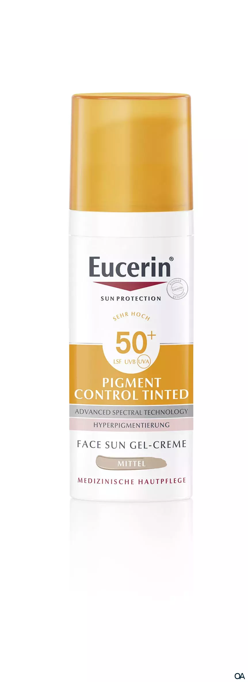 - Eucerin Pigment Control Tinted Face Sun Gel-Creme LSF50+ Mittel ist ein getönter Sonnenschutz für die tägliche Anwendung, der sofort einen gleichmäßigen Teint verleiht und vor sonnenbedingter Hyperpigmentierung schützt.