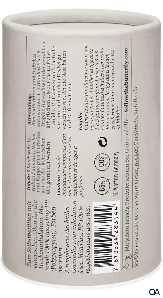 Entdecken Sie das praktische Farfalla Riechstiftset mit 5 belebenden Farben. Ideal für Aromatherapie unterwegs. Zum Selbstbefüllen mit ätherischen Ölen für die Trockeninhalation.