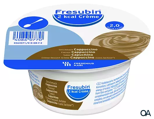 • Kontraindikationen: Nicht geeignet, wenn eine enterale Ernährung kontraindiziert ist sowie bei Intoleranz gegen einen in Fresubin 2 kcal Crème enthaltenen Inhaltsstoffe. Nicht geeignet bei Galaktosämie. Nicht geeignet für Kinder < 3 Jahren. Bei Kindern < 6 Jahren mit Vorsicht verwenden.