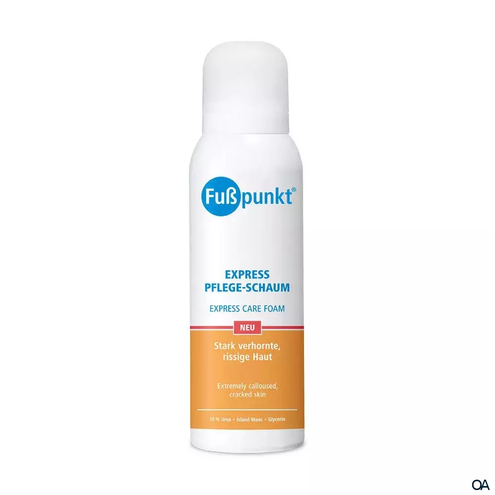 Der Fußpunkt® Express Pflege-Schaum stark verhornte, rissige Haut mit 15 % Urea und Glycerin spendet der Haut intensiv Feuchtigkeit und wirkt gezielt gegen oberflächliche Verhornungen und Risse.
