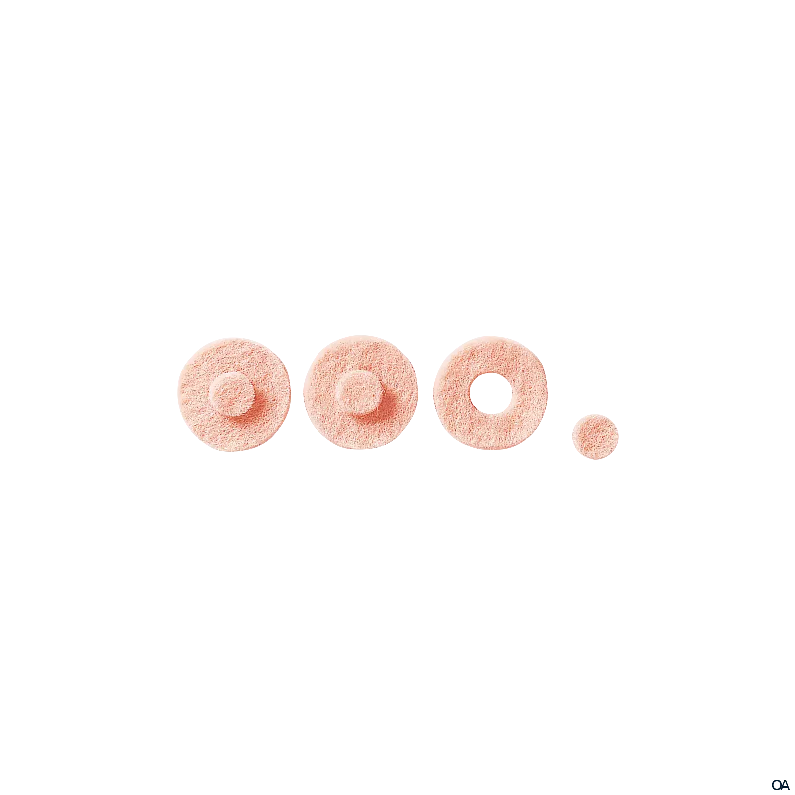 Aus weichem Filz mit einer hautfreundlichen Pflasterschicht.