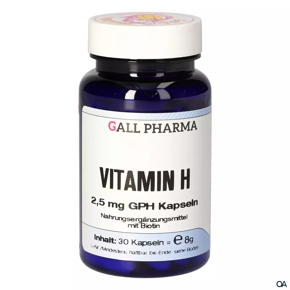 Gall Pharma Vitamin H 2,5 mg Kapseln unterstützen mit hochdosiertem Biotin die Gesundheit von Haaren, Haut und Nägeln. Biotin trägt zur Erhaltung normaler Haare und Haut sowie zu einem normalen Stoffwechsel bei.