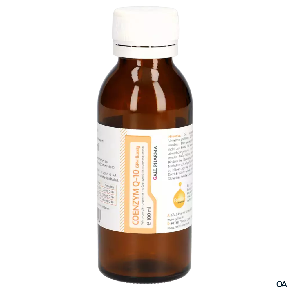 Gall Pharma Coenzym Q10 Flüssig ist ein Nahrungsergänzungsmittel mit Coenzym Q-10 in Sonnenblumenöl. Coenzym Q10 unterstützt den Körper bei der Energiegewinnung und die Organe - Herz, Lunge und Leber.