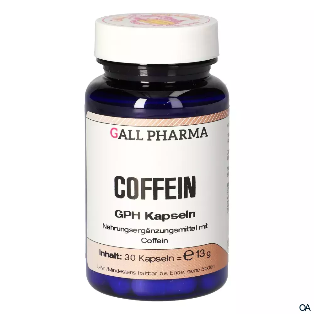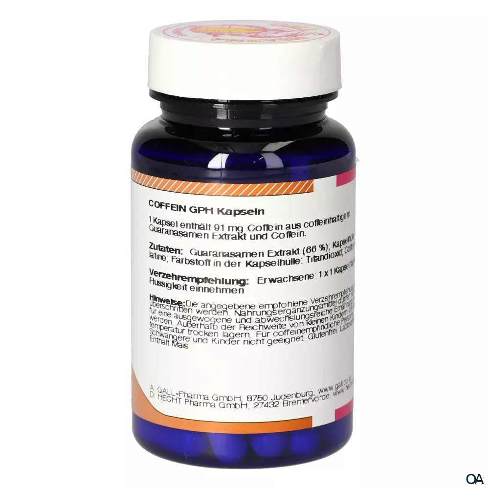 Die Gall Pharma Coffein Kapseln sind ein Nahrungsergänzungsmittel mit 91 mg Coffein aus koffeinhaltigem Guaranasamen Extrakt und Coffein pro Kapsel.