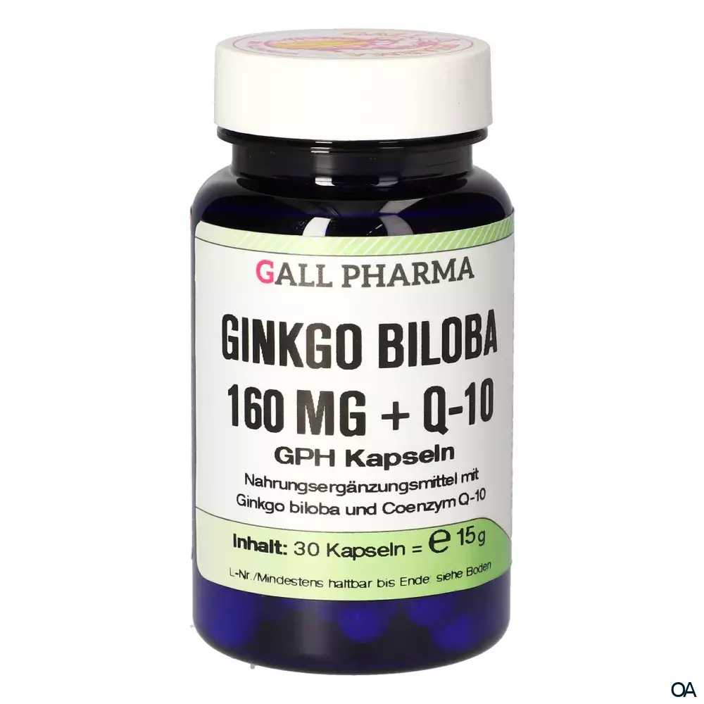 Die Gall Pharma Ginkgo Biloba 160 mg + Q10 Kapsel sind ein Nahrungsergänzungsmittel mit 160 mg Ginkgo biloba Extrakt und 30 mg Coenzym Q-10 pro Kapsel. Für das allgemeine Wohlbefinden bis ins hohe Alter.