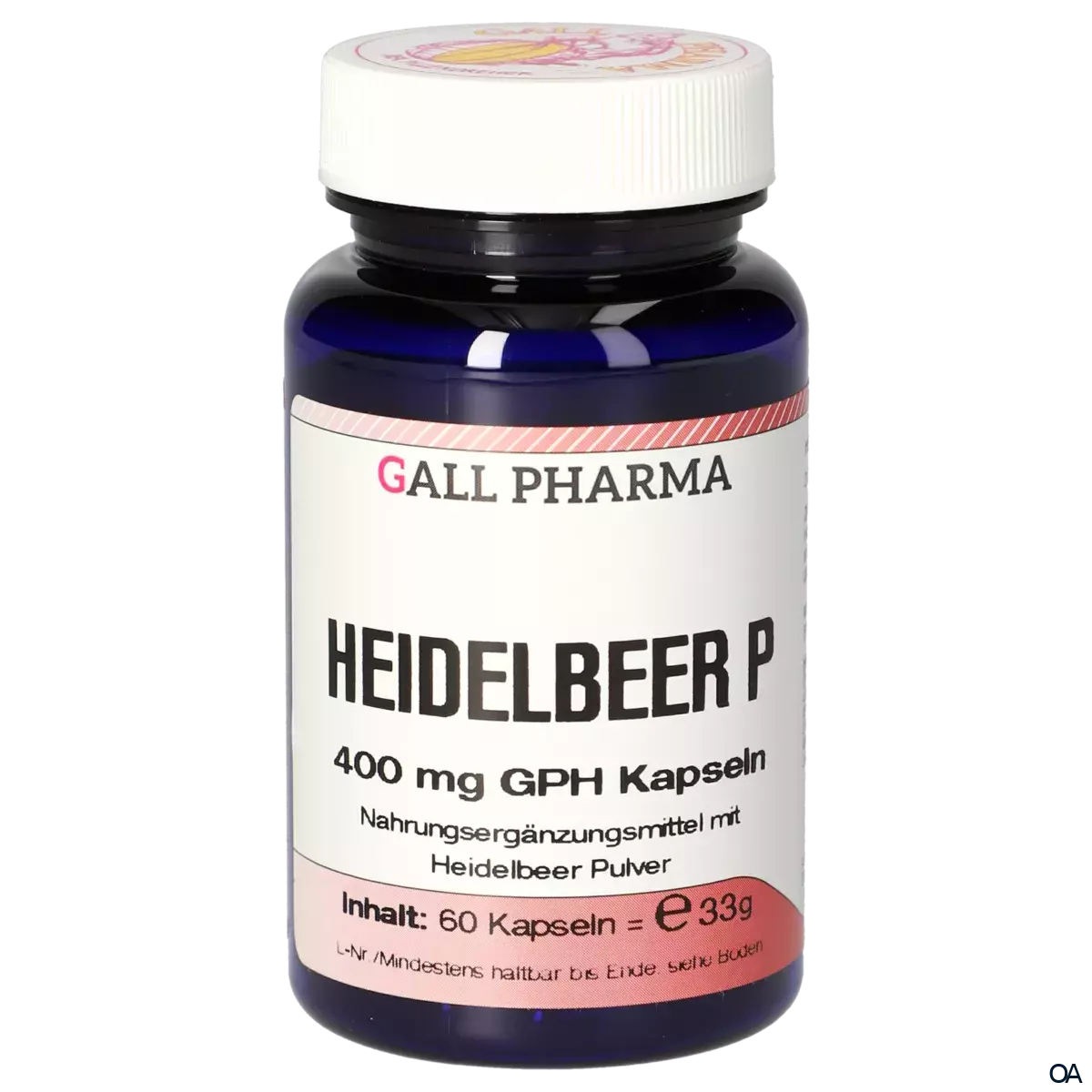 Gall Pharma Heidelbeer Pulver Kapseln sind ein Nahrungsergänzungsmittel mit 400 mg Heidelbeer-Pulver pro Kapsel. Heidelbeeren wirken entzündungshemmend und antioxidativ, schützen vor oxidativem Stress und tragen zur Augengesundheit bei.