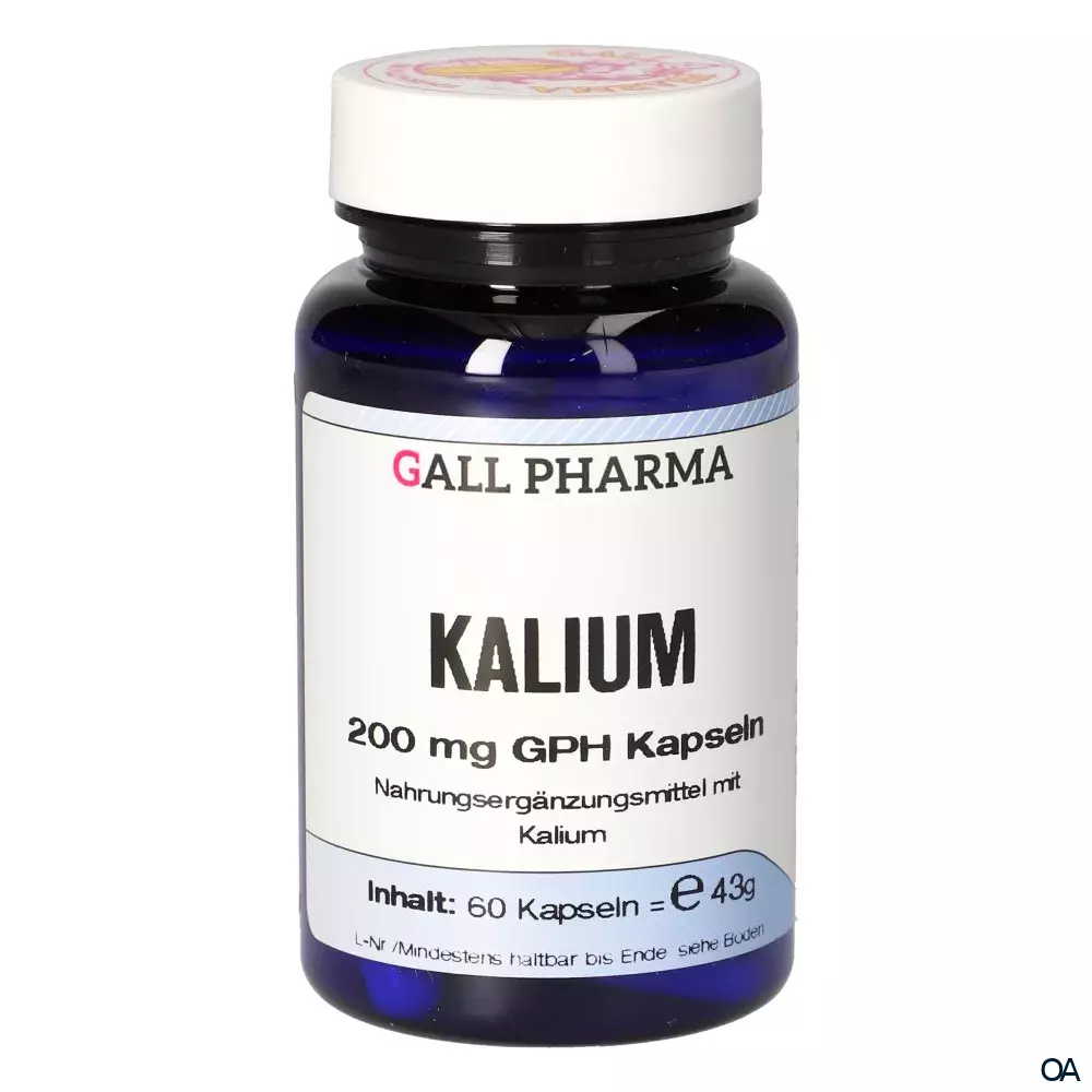 Kalium 200 mg GPH Kapseln enthalten 200 mg Kalium in Form von Kaliumchlorid in einer Hartgelatinekapsel. KCl deshalb, weil häufig ein Defizit an Kalium- und Chlorid-Ionen vorkommt. Kalium geht bei der Zubereitung von Lebensmitteln, beispielsweise durch Waschen und Kochen, in größeren Mengen verloren. Ein Mangel an Kalium kann eine Reihe von Störungen im Körper bewirken, die relativ unspezifisch sind. Durch die zu häufige Einnahme von Abführmitteln (Laxantien) sinken die Kaliumwerte.