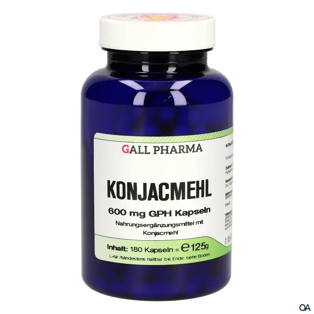 Die Gall Pharma Konjacmehl 600 mg Kapseln sind ein Nahrungsergänzungsmittel mit 600 mg Konjacmehl pro Kapsel.
