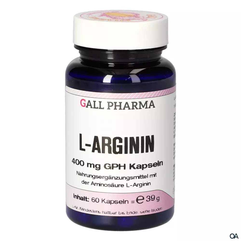 Gall Pharma L-Arginin Kapseln sind ein Nahrungsergänzungsmittel mit 400 mg L-Arginin. Die Aminosäure L-Arginin wirkt unterstützend bei erektiler Dysfunktion, kann die Durchblutung, Immunfunktion und die Wundheilung optimieren.