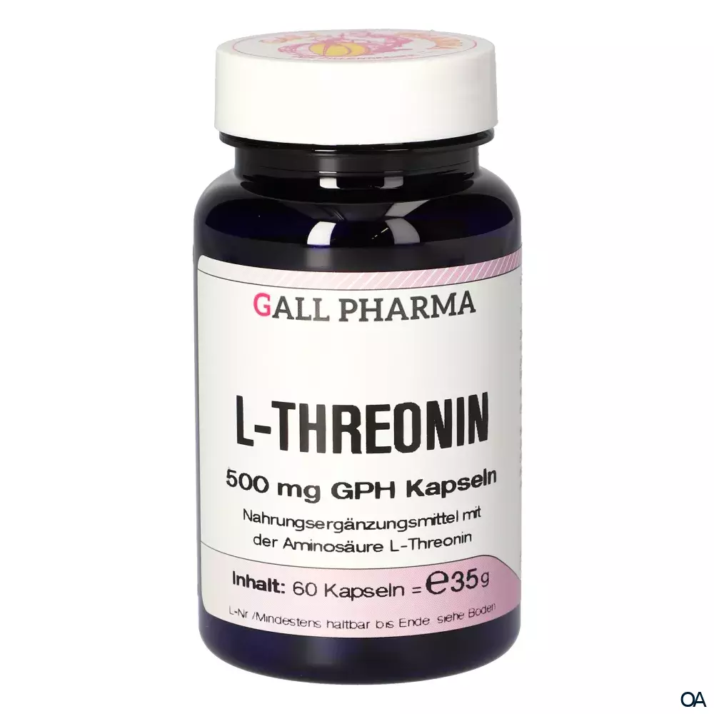 Gall Pharma L-Threonin Kapseln sind ein Nahrungsergänzungsmittel mit 500 mg L-Threonin pro Kapsel. Die essentielle Aminosäure sorgt für ein funktionierendes Immunsystem, dient als Energiequelle und unterstützt die Harnsäureausschüttung.