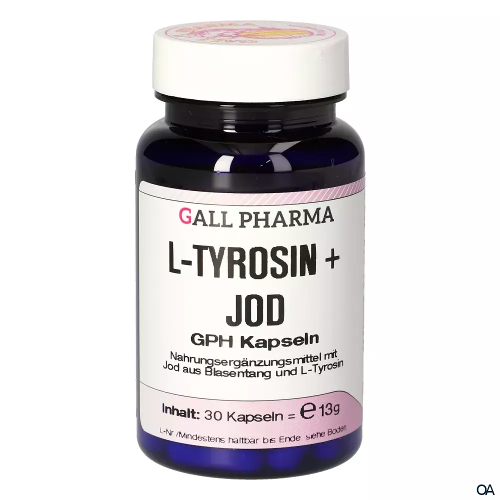 Gall Pharma L-Tyrosin + Jod Kapseln sind ein Nahrungsergänzungsmittel, das die normalen Funktion der Schilddrüsen und des Energiestoffwechsel unterstützt.