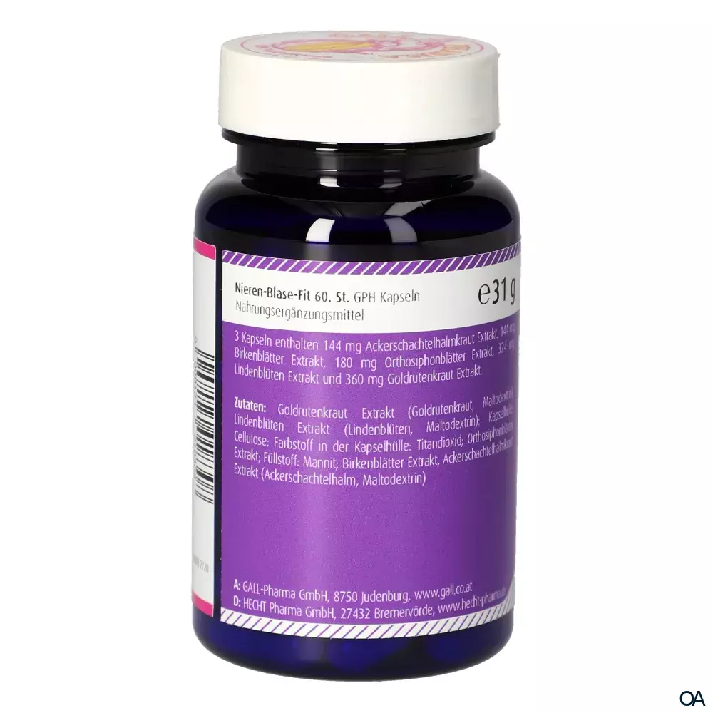 Die Gall Pharma Nieren-Blase Fit Kapseln sind ein Nahrungsergänzungsmittel mit Goldrutenkrautextrakt, Lindenblütenextrakt, Orthosiphonextrakt, Birkenblätterextrakt und Ackerschachtelhalmextrakt.
