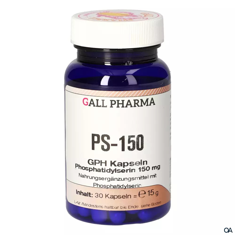 Die Gall Pharma PS-150 Kapseln sind ein Nahrungsergänzungsmittel mit Phospatidylserin. Phosphatidylserin (kurz PS) gehört zur Gruppe der Phospholipide, welche natürliche Bausteine für Gehirn, Zellwände und Nervenzellen sind.
