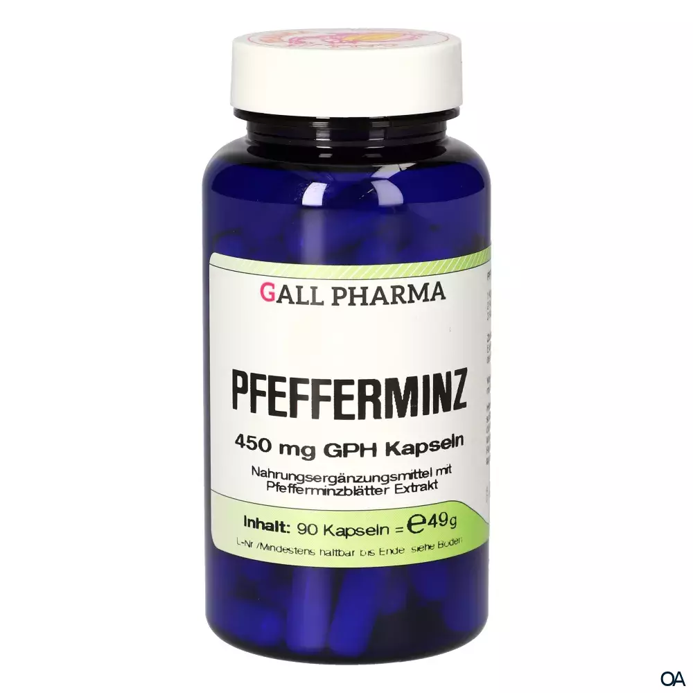 Die Gall Pharma Pfefferminz 450 mg Kapseln sind ein Nahrungsergänzungsmittel mit 450 mg Pfefferminz Extrakt pro Kapsel.