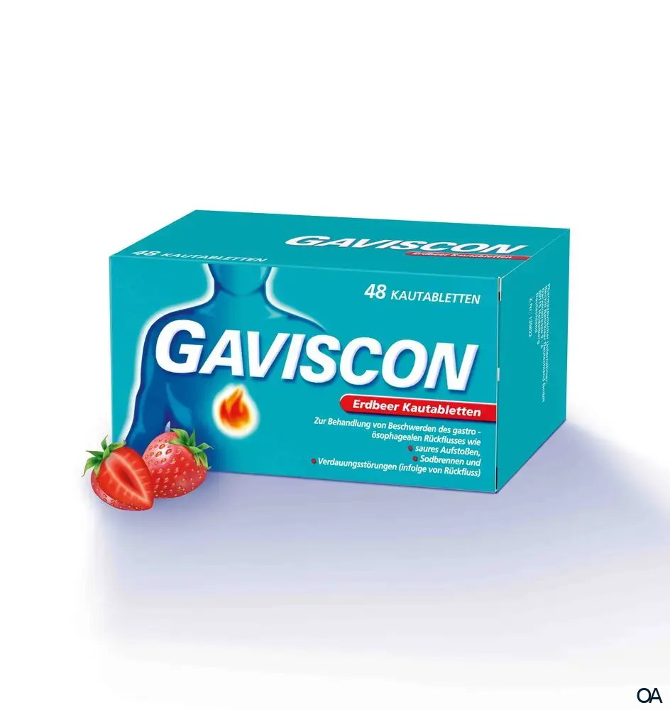 Gaviscon Erdbeer Kautabletten werden zur Behandlung von Beschwerden des gastroösophagealen Rückflusses wie saures Aufstoßen, Sodbrennen und Verdauungsstörungen (infolge von Rückfluss) angewendet, welche z.B. nach Mahlzeiten oder während der Schwangerschaft oder bei Patienten mit Beschwerden im Zusammenhang mit einer Speiseröhrenentzündung auftreten können.