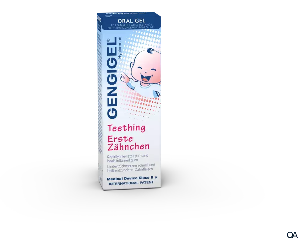 - Gengigel ist ein Medizinprodukt auf Basis von Hyaluronsäure, die durch einen patentierten biotechnologischen Prozess gewonnen wird, der eine hohe Qualität und Reinheit der Hyaluronsäure gewährleistet. Die in Gengigel enthaltene Formel der Hyaluronsäure gleicht der natürlichen Hyaluronsäure im gesunden Zahnfleisch.