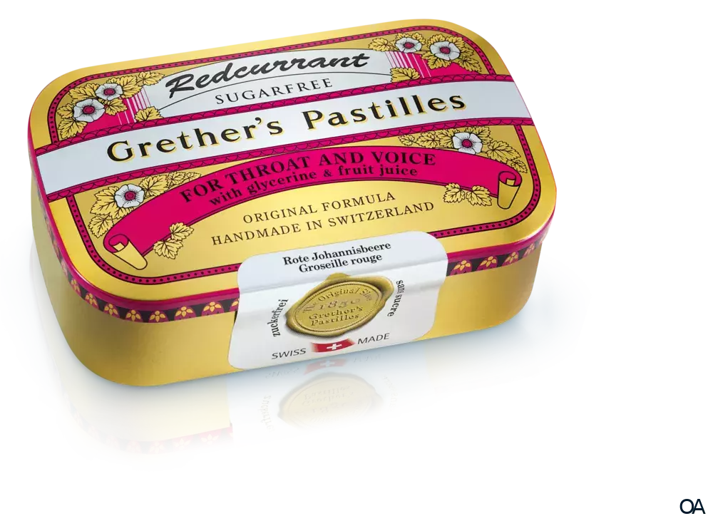 Neben rotem Johannisbeersaft und dem Saft der Passionsfrucht, die Grether's Pastilles Redcurrant den unvergleichlichen Geschmack geben, entfalten weitere wertvolle Inhaltsstoffe ihre wohltuende Wirkung: pflanzliches Glycerin legt sich wie ein Schutzfilm um strapazierte Stimmbänder, der raue Hals wird beruhigt, die Rotalge Agar-Agar sorgt für die einzigartige geschmeidige Konsistenz.