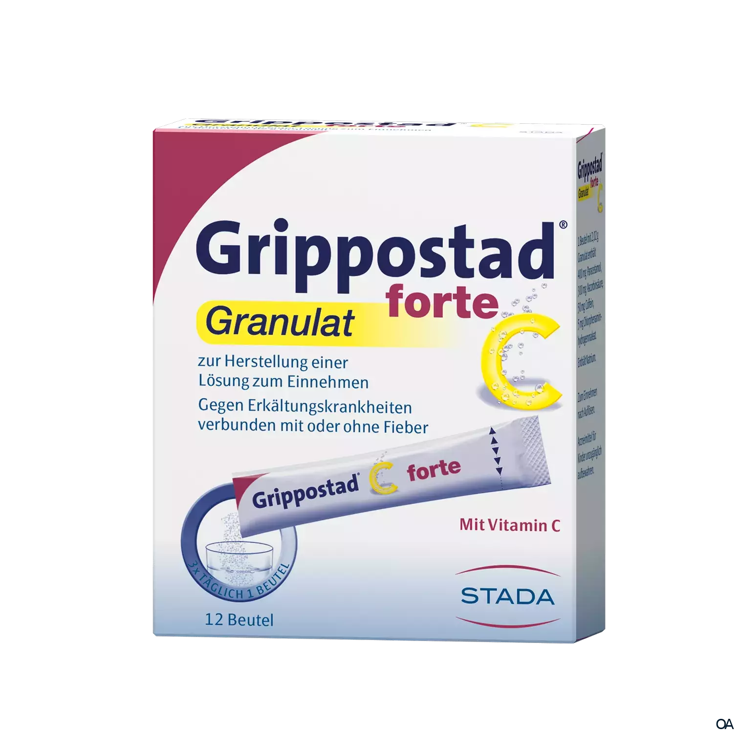 - Zur symptomatischen Behandlung von gemeinsam auftretenden Beschwerden wie Kopf- und Gliederschmerzen, Schnupfen und Reizhusten im Rahmen einer einfachen Erkältungskrankheit. Bei gleichzeitigem Fieber oder erhöhter Körpertemperatur wirkt Grippostad C forte Granulat fiebersenkend.