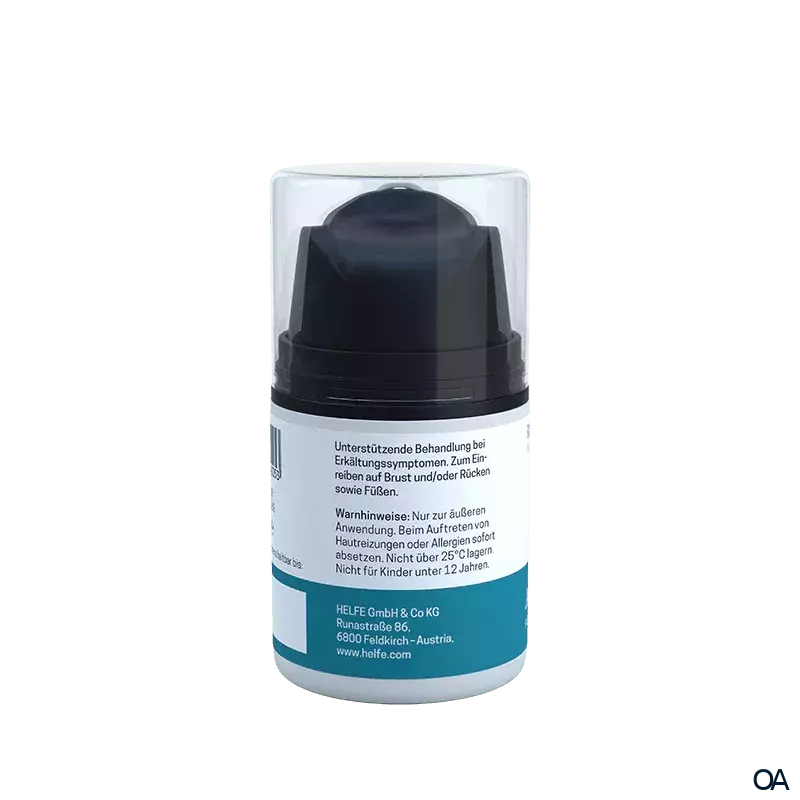- Unterstützende Behandlung bei Erkältungssymptomen. Tragen Sie den HELFE Atemfrei Balsam für Erwachsene mehrmals täglich auf Brust und/oder Rücken sowie Füße auf.