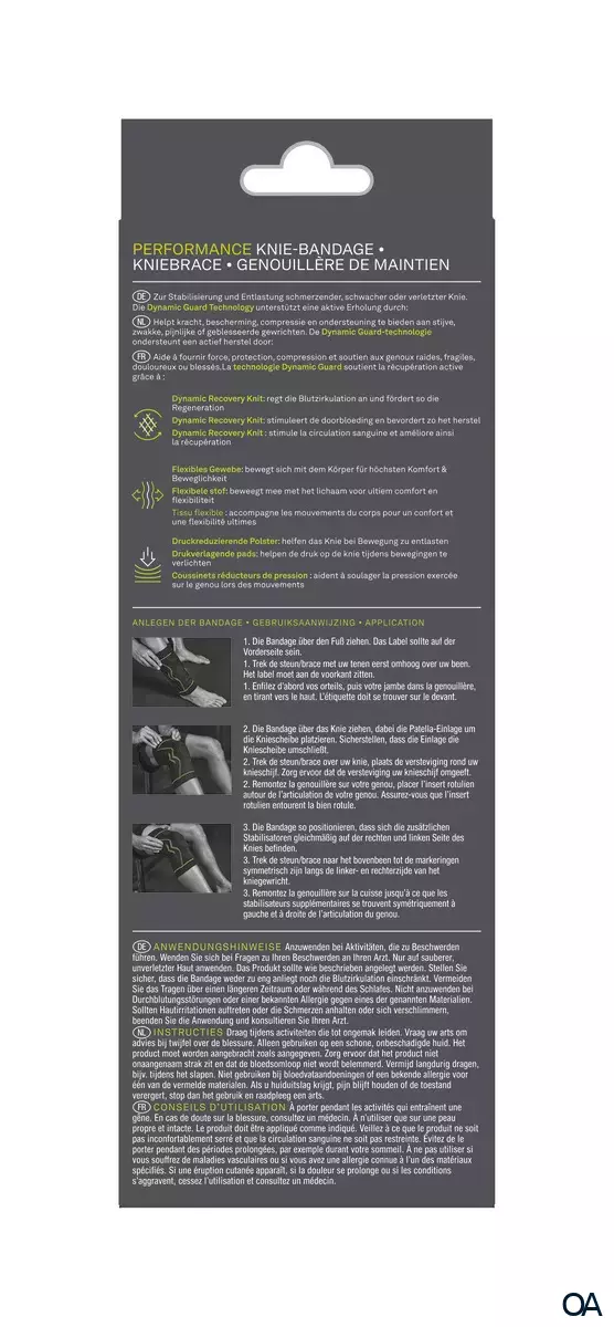 Hinweise: Anzuwenden bei Aktivitäten, die zu Beschwerden führen. Wenden Sie sich bei Fragen zu Ihren Beschwerden an Ihren Arzt. Nur auf sauberer, unverletzter Haut anzuwenden. Das Produkt sollte wie beschrieben angelegt werden. Stellen Sie sicher, dass die Bandage weder zu eng anliegt noch die Blutzirkulation einschränkt. Vermeiden Sie das Tragen über einen längeren Zeitraum oder während des Schlafens. Nicht anzuwenden bei Durchblutungsstörungen oder einer bekannten Allergie gegen eines der genannten Materialien. Sollten Hautirritationen auftreten oder die Schmerzen anhalten oder sich verschlimmern, beenden Sie die Anwendung und konsultieren Sie Ihren Arzt.